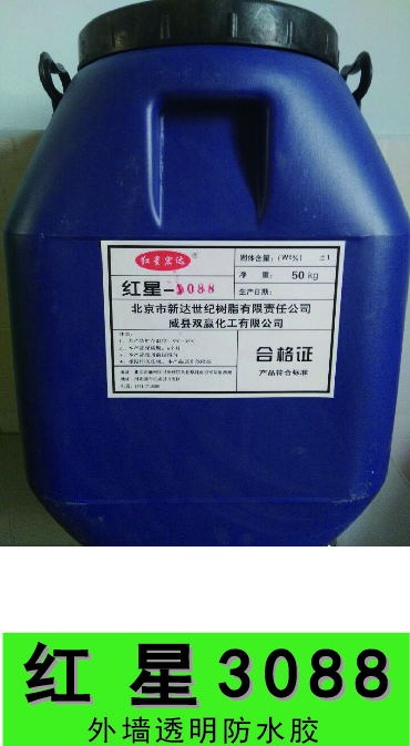 紅星一3088外墻透明防水膠是以特種共聚乳液為基料,加以多種優(yōu)質(zhì)進(jìn)口助劑和特種單體物質(zhì)精制而成的高分子無(wú)色透明的外墻防水乳液。膠體固化后能形成一...